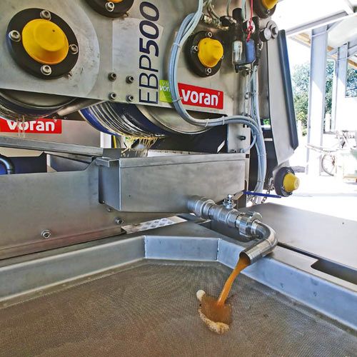 In der Bandpresse durchlläuft die Maische, auf dem Siebband liegend, mehrere Walzen und wird so fortlaufend schonend ausgepresst. Ein mühevolles, manuelles Aufschichten der Maische wie in einer konventionellen Packpresse ist nicht mehr notwendig!